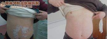 2 、经过复查检测后,第二个疗程开始,使用药物分量及药物的药效性减轻,个星期左右发现不再出现新的银屑,原有的皮屑厚度变薄;